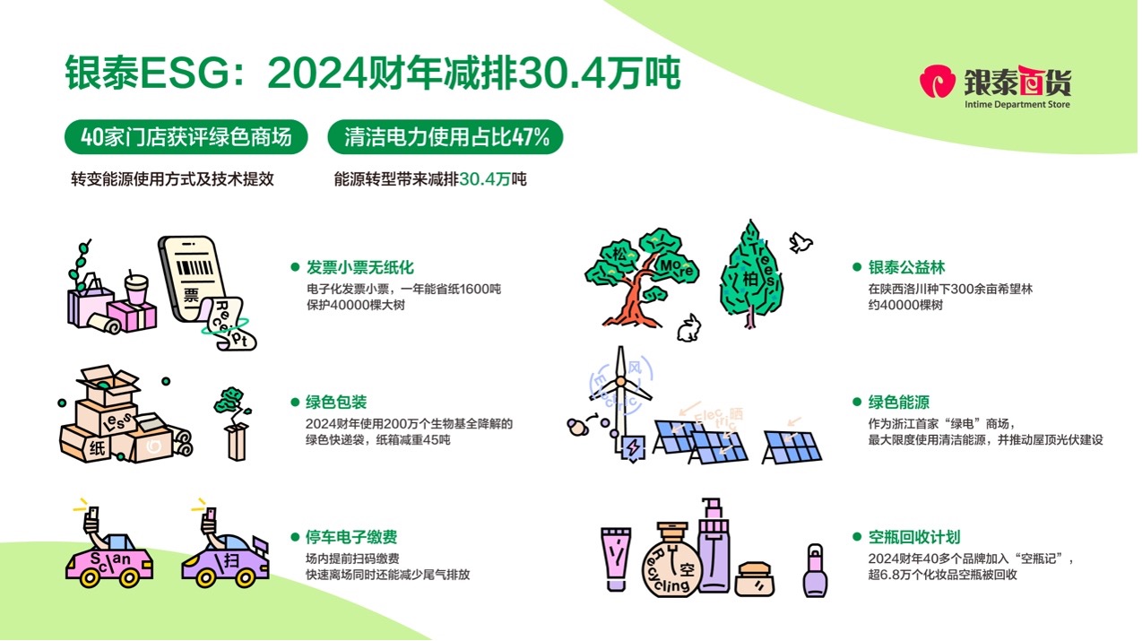 显示呈报,续成长ESG范畴过去一年正在可持,“绿色市场”门店达40家银泰百货正在世界限造内获评,例达47.3%绿色电力利用比,排30.4万吨能源转型带来减。