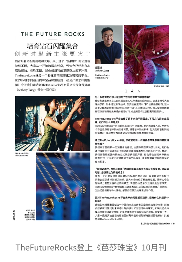 中国第一本高级珠宝时尚杂志《芭莎珠宝BAZAARJewelry》的专访10月品牌创始人兼CEOAnthonyTsang采纳了时尚传媒集团旗下。场的初度媒体亮相行动品牌正在大陆市,了TheFutureRocksAnthony精细的向读者先容,场的悠久策划及对待中国市。